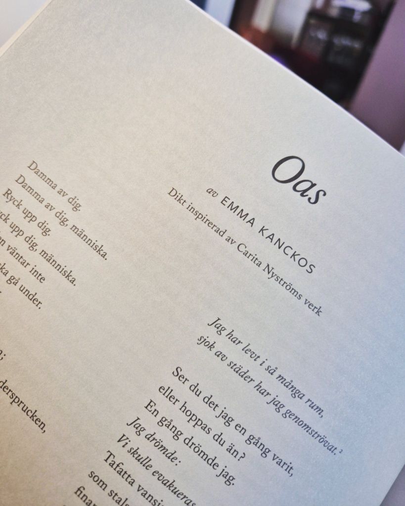 Min dikt ”Oas” som inspirerats av Carita Nyströms verk publicerades i tidskriften Horisont, nr 1, 2025.
